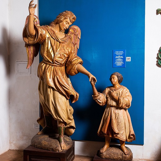 Estatuas de madera talladas y policromadas. Estatuas de un ángel y un niño identificadas como la pareja del Arcángel Rafael acompañando al joven Tobías. El Arcángel Rafael, de pie sobre una base, está compuesto de una sola pieza de madera ahuecada, salvo los brazos y las alas que son independientes. Girando a la derecha, está dando la mano a Tobías, mientras que su otra mano esta levantada hacia el cielo.