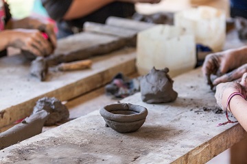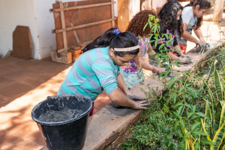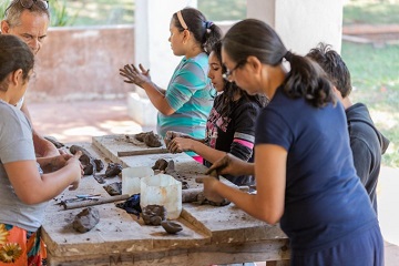 El taller de cerámica guaraní revaloriza y difunde la cerámica en general y la guaraní en particular. Entre los trabajos de los alumnos del taller de cerámica se encuentran algunas réplicas de santos del Museo de Arte Jesuítico-Guaraní y obras alusivas a la cultura paraguaya o la naturaleza, así como lo que brota de la imaginación. Los objetos utilitarios y decorativos se inspiran respecto a su técnica en la cerámica Guaraní del sur del Paraguay.