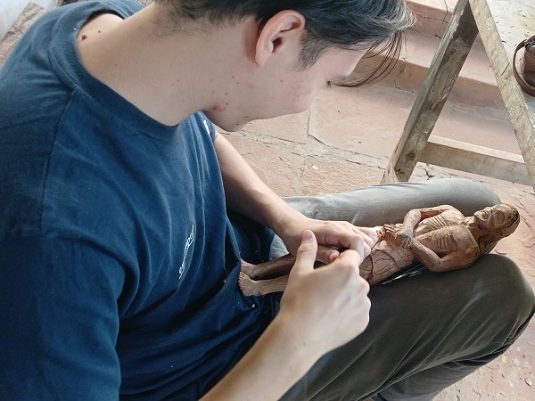 En este taller, los jóvenes principiantes elaboran tallas en madera de bajo relieve con motivos sacros que se encuentran en el Museo como querubines o de preferencia del participante siempre que su realización no sea muy compleja. La atención del profesor a los estudiantes es personalizada ya que cada uno posee un ritmo diferente en la elaboración de sus obras.