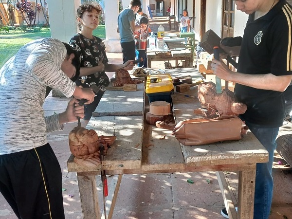 Este taller se desarrolla los jueves de las 14:30 a 16:30 hrs. y los sábados de las 09:00 a las 11:00 y de 14:30 a 16:30 hrs. en una de las galerías del Museo de Arte Jesuítico-Guaraní.